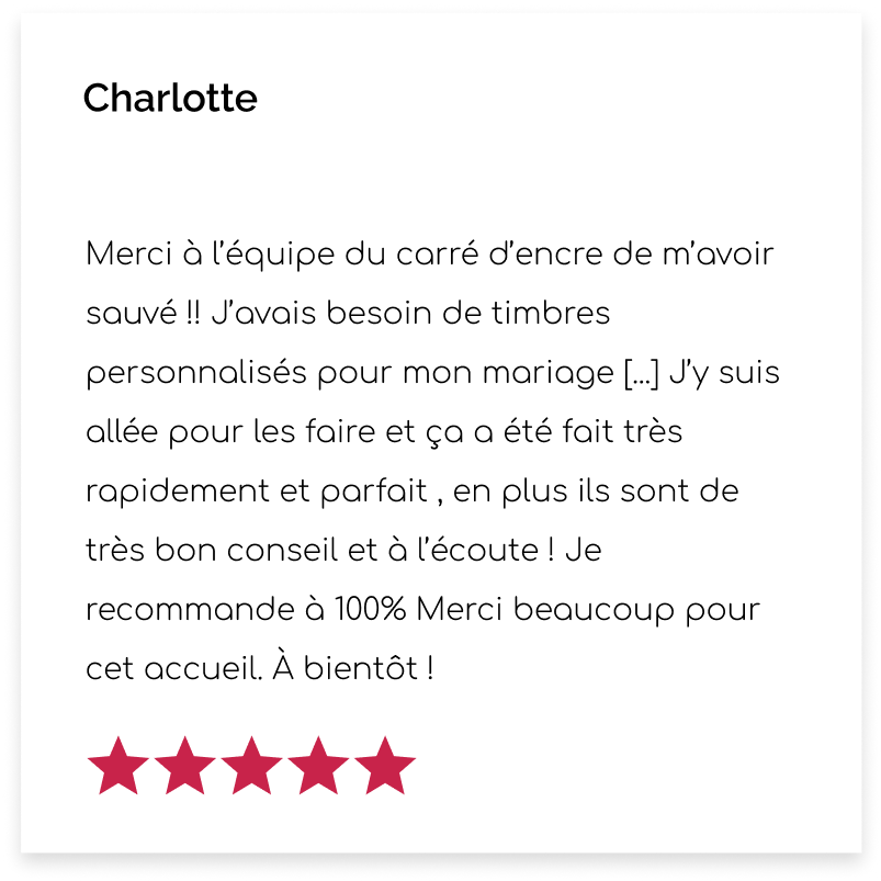 Le Carré d’Encre vous propose de réaliser sur place et en direct vos timbres personnalisés.